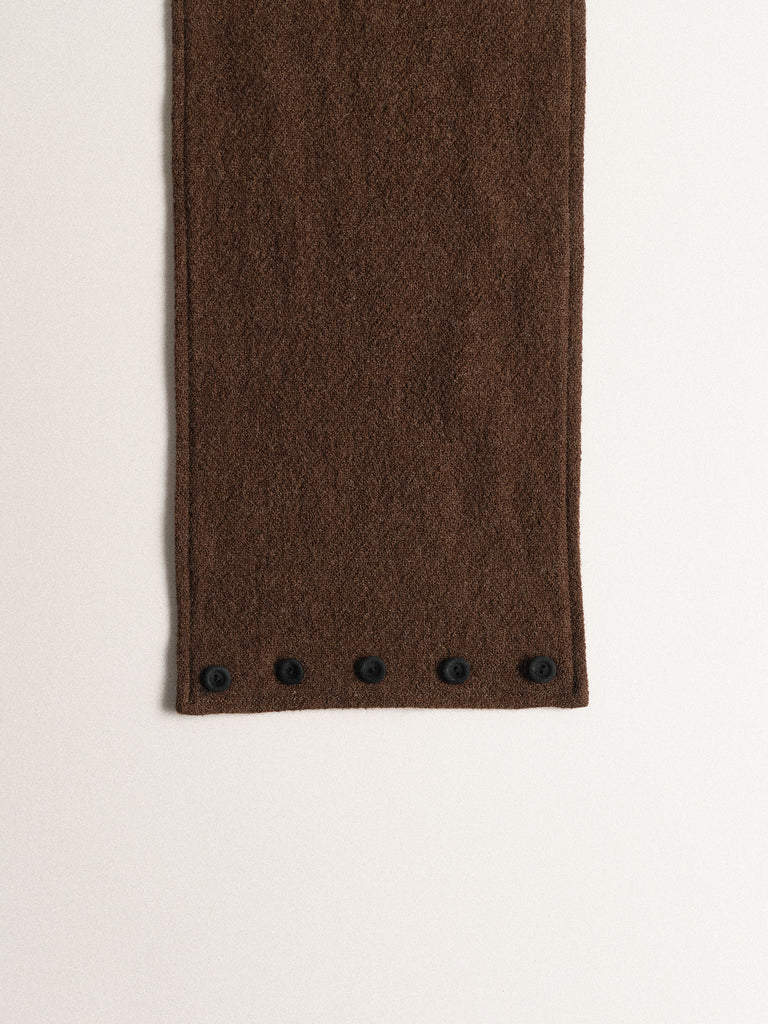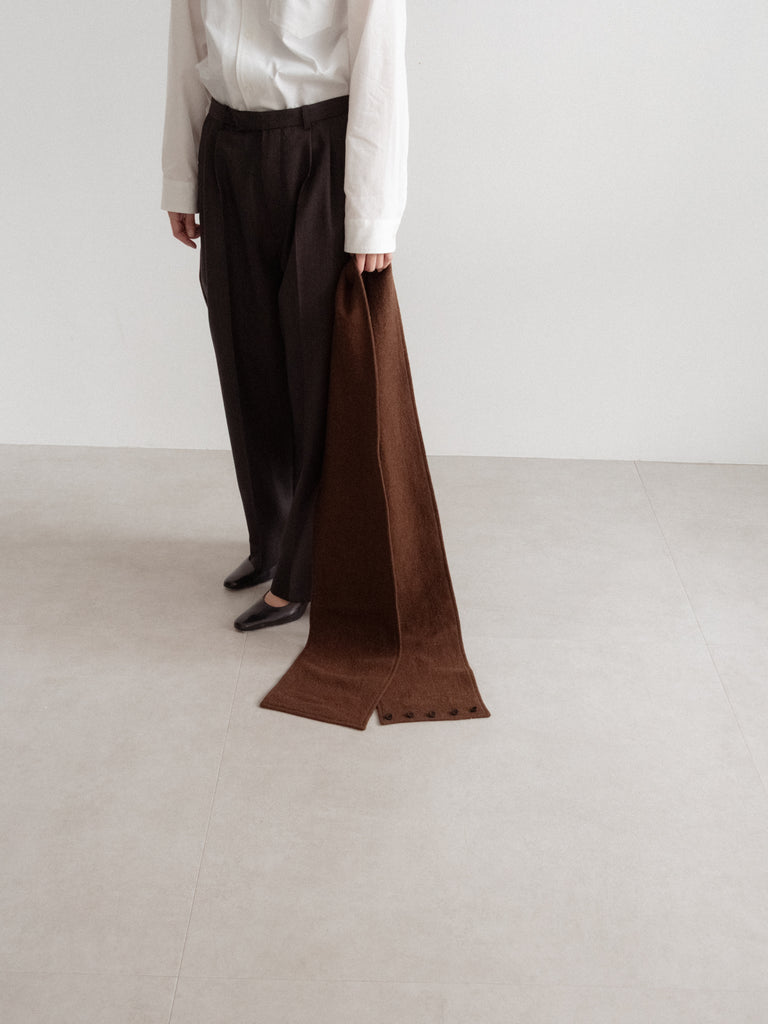 元々のクリンプ性の強い毛質の為、縮絨加工を施すことで独特な膨らみのある表情が生まれています。