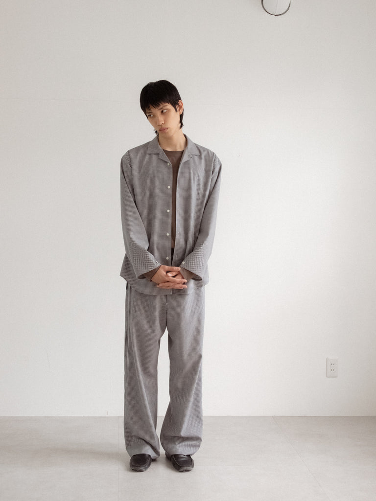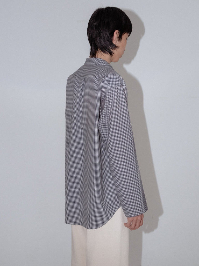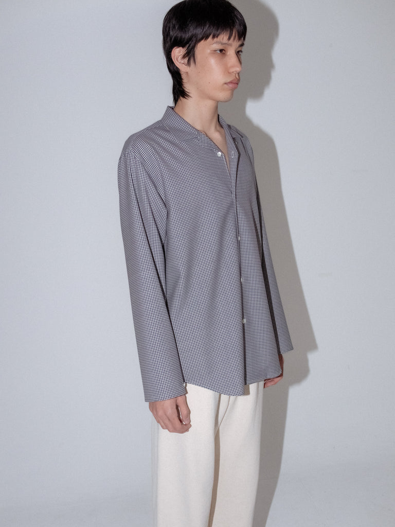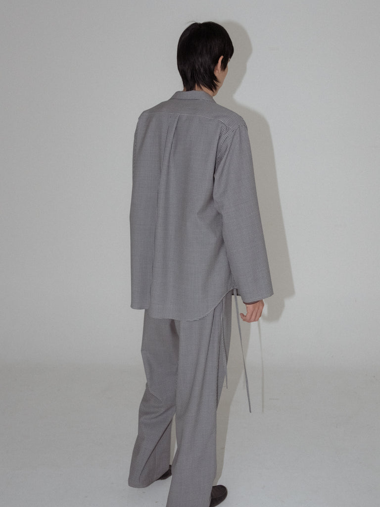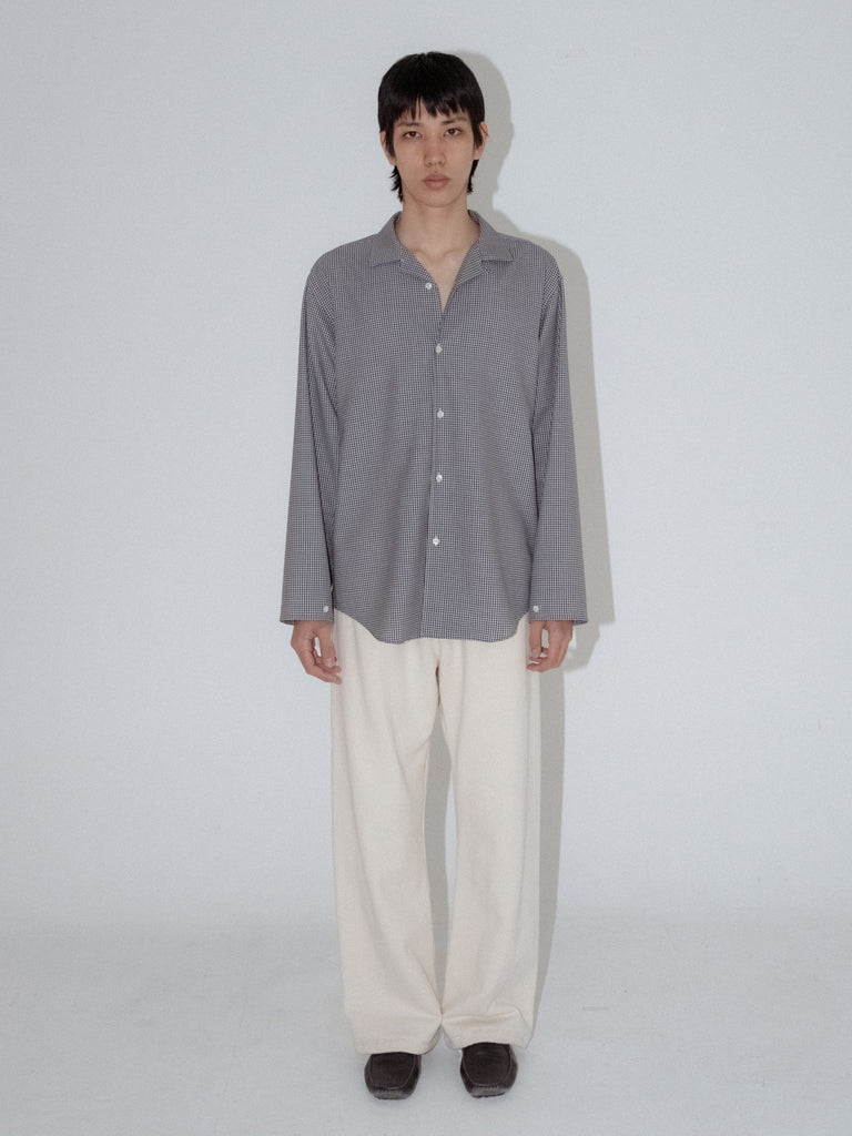 Wool Lounge Shirt White & Navy (Gingham)